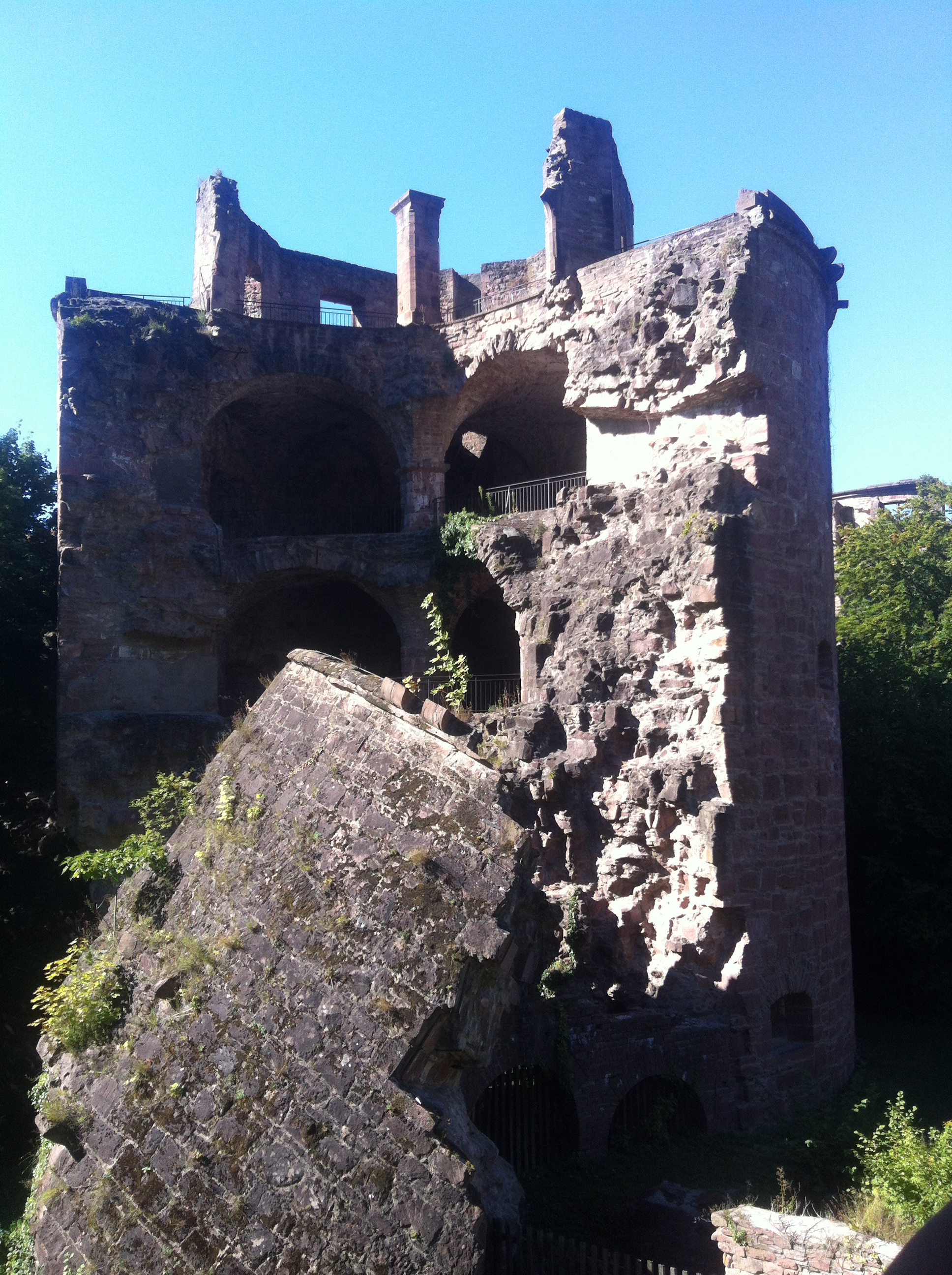 On the final day of my trip we stayed in Heidelberg and visited Heidelberg Castle, Heidelberg University Obviously due to the strategic advantages of building a castle on top of a hill this castle requires yet another walk up a very steep hill. However, due to the fact that this castle is one of the main tourist attractions of the city, there is actually a funicular railway that takes visitors up and down from the castle. (We took this route back down as my feet were still sore from the 6 inch wedge heel hiking mishap) Heidelberg castle is one of the most famous castles in Germany, has been written about by the likes of Mark Twain and is now an impressively popular destination for American and Japanese tourists. As with Dilsberg, Heidelberg castle comes with it’s own set of romanticised myths involving knights and princesses. The most famous of these being the tale of the Knight’s Footprint which stems from a footprint-shaped indentation in the sandstone floor of the castle’s main balcony and is said to have been put there by a knight when he jumped out of a banquet hall in full armour while trying to avoid a fire. Heidelberg Castle is technically in ruins but has been partially restored to include some inside areas. One of theses inside areas has been converted into a pharmacy museum, which may seem an odd choice but is very interesting to go around and see all the historical medical equipment. It adds an extra reason to stay around the castle ruins for a few extra hours and offers an inside escape should it rain. (Although based on the weather I experienced in Germany I’d be pushed to believe that it ever rains there!) Another inside area of the castle is it’s cellars, which actually house the world’s largest wine barrel, the Heidelberg Tun. This is somewhat of a tourist draw, but be warned that unfortunately today the barrel is actually empty.