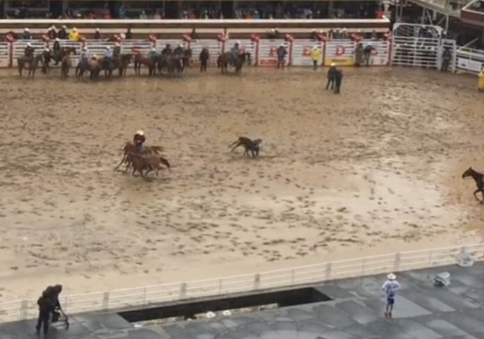 Definitely one of my favourite events, barrel racing is the only rodeo event at the stampede that women can compete in. This event involves three barrels that each competitor must ride around in as tight a circle as possible before galloping over the finish line, the fastest time wins. As I mentioned, I went to the rodeo three times and was so happy to be able to attend Championship Sunday to see this year’s barrel racing champion, Mary Burger. At 67, Mary Burger was the oldest stampede competitor and an absolute crowd favourite. Not many riders get a standing ovation in the pouring rain! Lisa Lockhart is another popular barrel racer who I was lucky enough to cheer on all three times. Although she tipped a barrel in the final and only placed third she did walk away with the prestigious Guy Weadik (the founder of the stampede) award for the competitor who best embodied the stampede spirit. Power to the barrel racers!