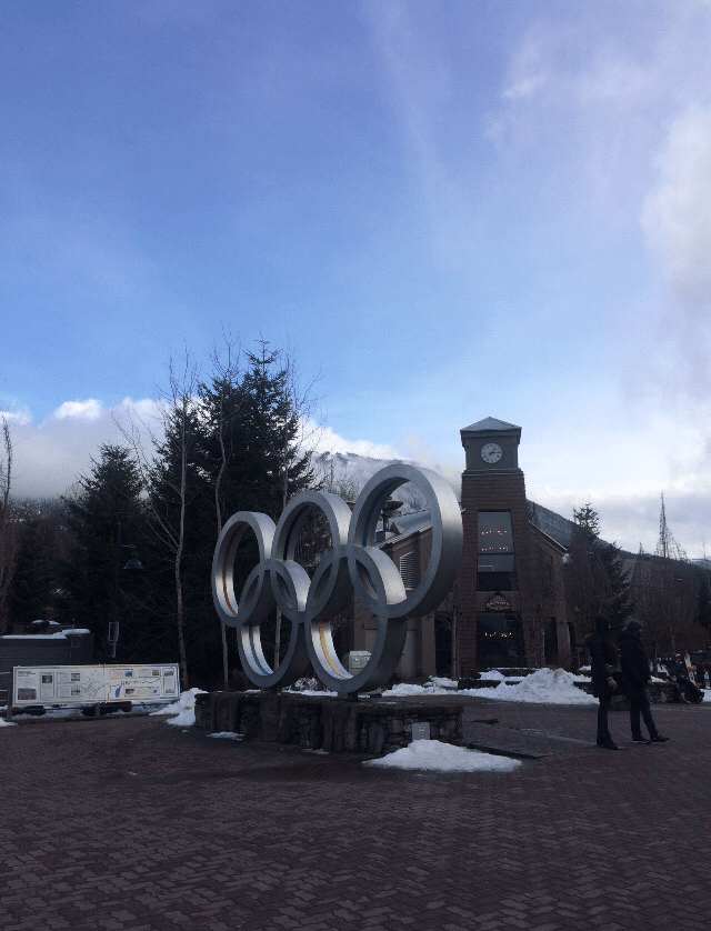 While everyone else headed off up the slopes, I spent the first full day in Whistler just wandering around the village. There are a million different little souvenir shops (which I will admit are a weakness of mine) as well as countless ski wear shops, which are still interesting to look at even if you don’t ski. I also spent some time taking photos with the many remnants of Whistler’s crowning achievement to date, hosting the 2010 winter Olympic Games. The Whistler Medals Plaza is home to a sculpture of the Olympic Rings which is a favourite photo op for visitors, as well as the winter ice skating rink (not open until December 10th unfortunately and I left Whistler on December 5th…) There is also a sculpture of the Inukshuk (an ancient Inuit traditional cairn) that became the symbol for the Vancouver/Whistler olympics.