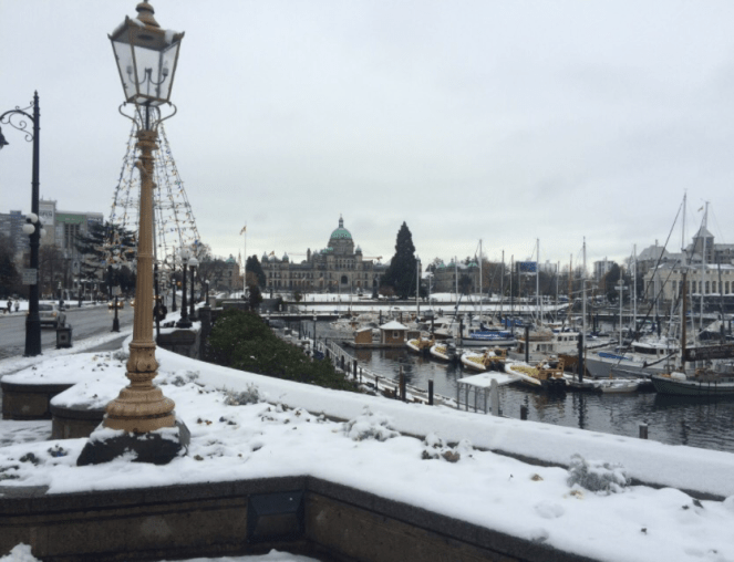 The parliament buildings and BC museum are also next to Victoria Harbour, which is even prettier than normal in the snow.
